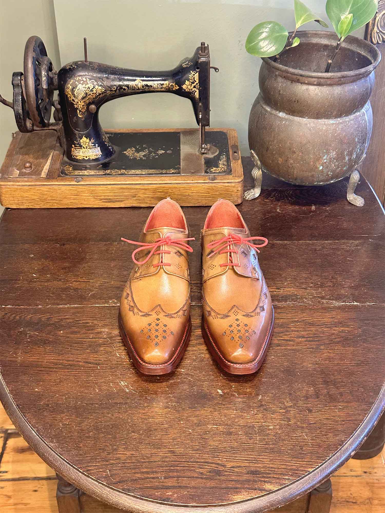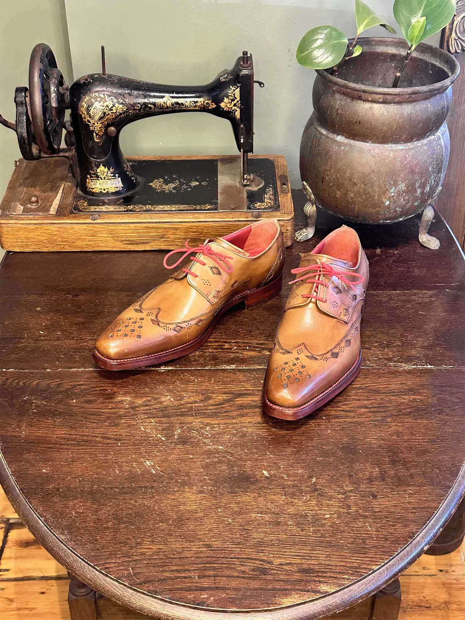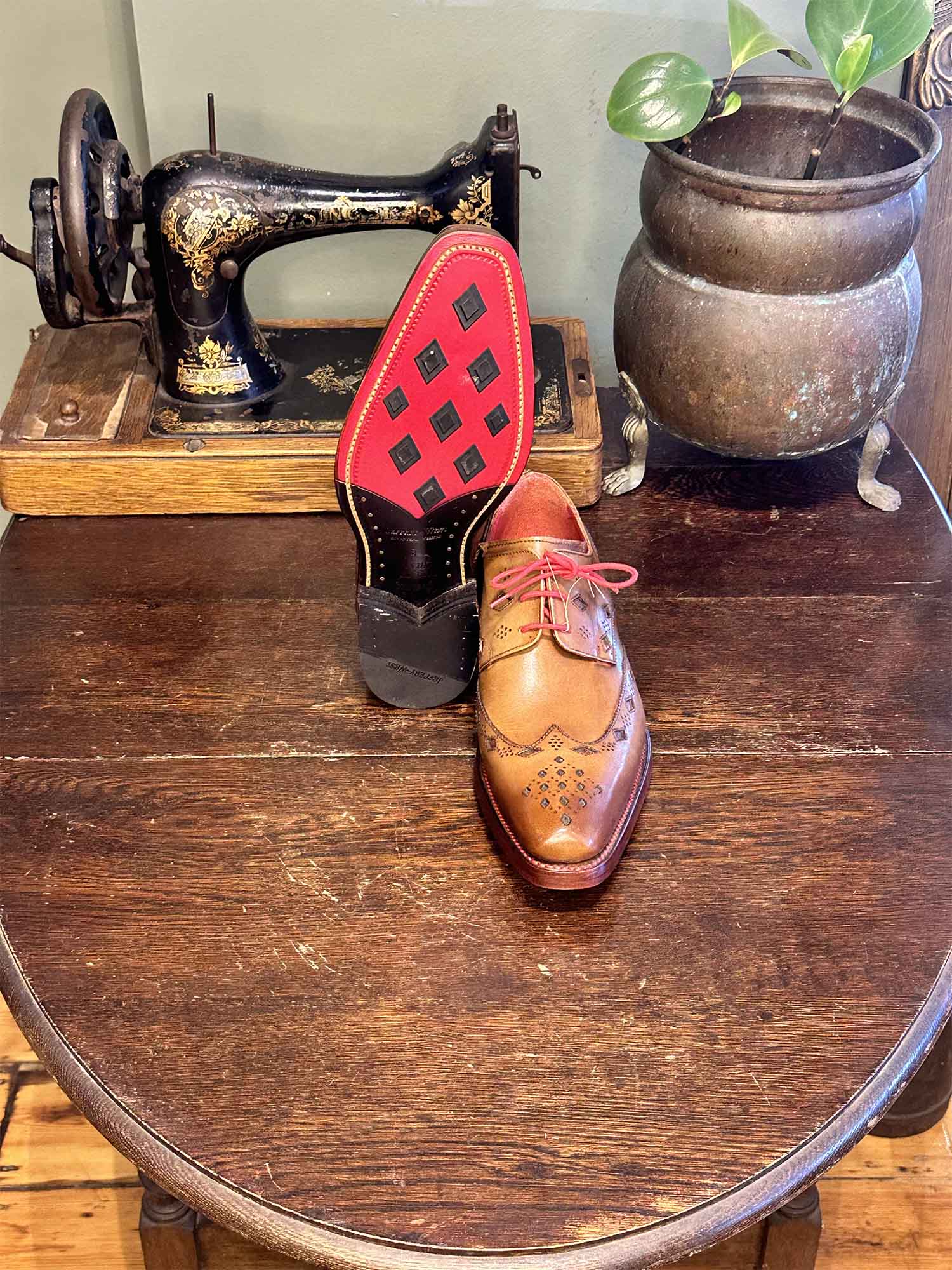 The Dexter – ‘Homicide’ Gibson in Hand Coloured and Burnished Mahogany Calf Leather with Diamond Cut-Out and Punching.